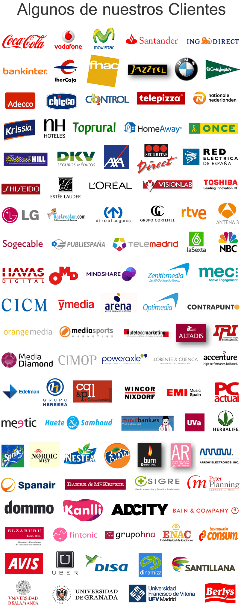 Estudios sobre BBDD de clientes, empleados, consumidores, usuarios, etc., utilizando en todo momento la apariencia, el nombre, los colores y el logotipo de nuestro cliente, de tal manera que los encuestados tienen la percepción de estar completando una encuesta de nuestro cliente. Sobre las BBDD de nuestros clientes realizamos estudios de clima laboral, lanzamiento de nuevos productos, estudios de comportamiento, percepción, segmentación, posicionamiento, notoriedad, competencia, prueba de productos, etc.